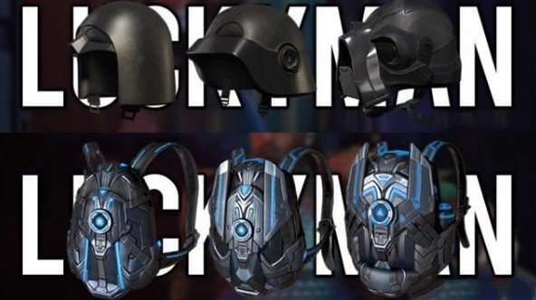 接下来是标配的头盔和背包,头盔造型一般,颜色还是黑漆漆的一片。而背包就要科幻一些了,3款背包的风格和造型都差不多,黑色和蓝色灯效的搭配,喜不喜欢还是看玩家个人,三级包的侧边居然还放了一个水瓶,这也是绝了。