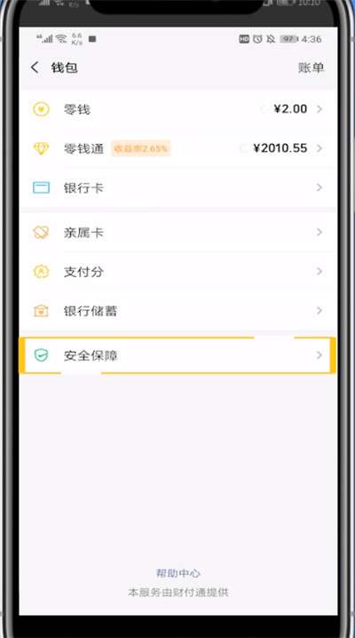 5、点击安全保障