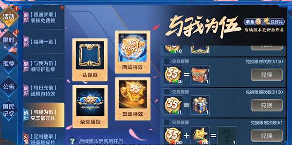 游戏中可以通过累计登录的方式获得五五守护勋章,五五守护勋章可以用来兑换盾山-圆桌骑士皮肤以及头像框等游戏道具;