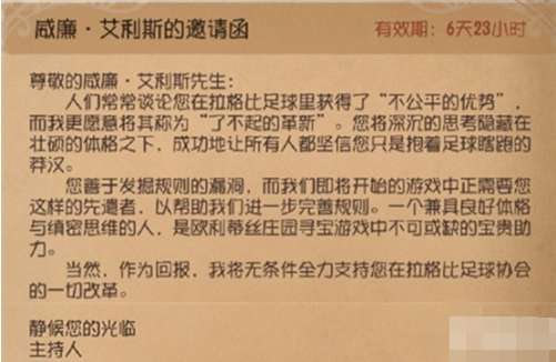 玩家们早已知道会有这样一封信的存在,不过这一次则是其终于公开了邀请函的详细内容。