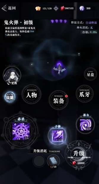 普通攻击的弹道是发散成四颗,攻击频率很密集,清小怪速度还凑活。