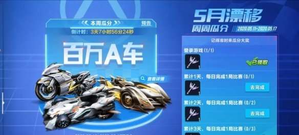 参与全明星之夜的同时,车手也别忘了还在进行中的主题车厂A车瓜分活动,5月11日-5月17日完成限定任务即可领瓜分钥匙。