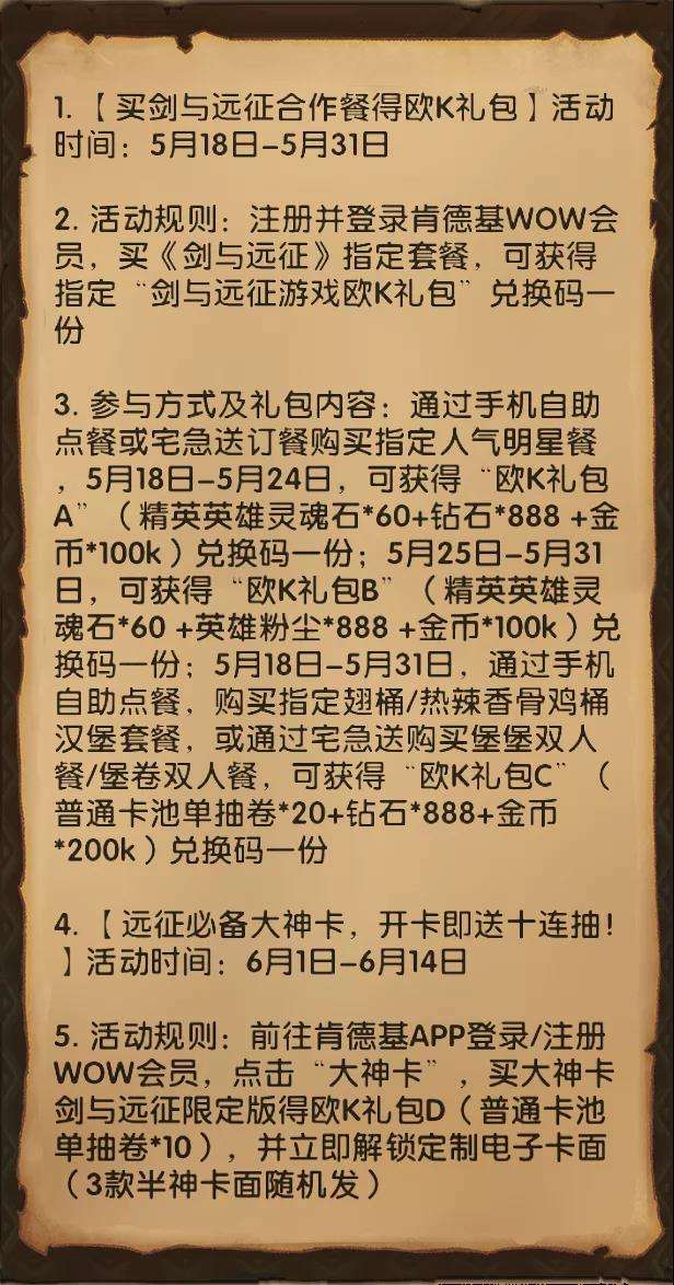 剑与远征与肯德基的活动是很多玩家喜欢的,本次就为大家带来了剑与远征肯德基活动攻略,也是肯德基兑换码与各套餐价值分析,非常全面的内容,想了解的朋友可以参考,希望能帮到大家。