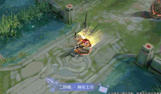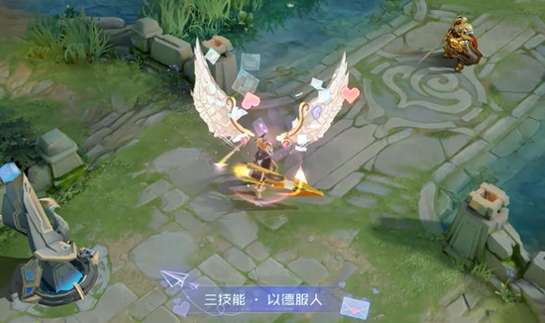 刘备开启二技能向指定方向冲撞,前方会出现一个爱心的图案。