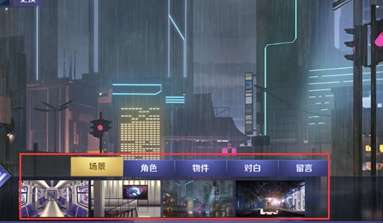 1、在场景/角色/物件/对白页卡中,点击素材即可放置在主面板中;