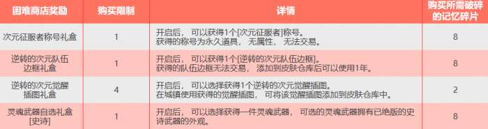 除了以上奖励,还有困难模式掉落的恍惚的记忆碎片专用的商店