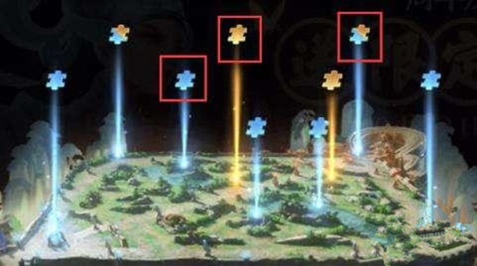 同时,碎片标记指的是该位置的回忆图片(2个碎片合成1张图片)当前的解锁状态,蓝色为未解锁,橙色为已解锁,一半橙一半蓝则表示解锁了一半(1个碎片,2分之一张图片)。