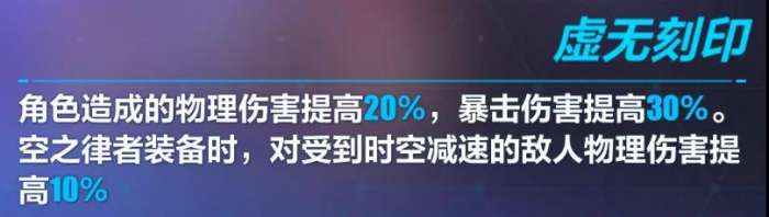 简单粗暴的常驻加成,基础数值和原版空无一致,附赠一个对时空减速敌人10%增伤。时空增伤数值相当于闪避技能的一层被动。