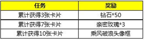 3、任务奖励:活动共15张英雄卡片,收集其中任意3、7、10张可分别获得对应阶段奖励