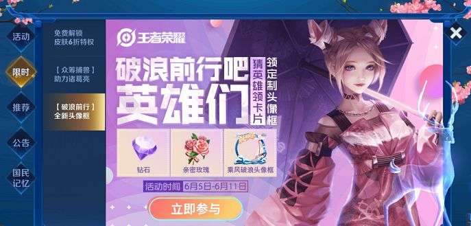 王者荣耀破浪前行活动已开启,全新定制头像框领取条件