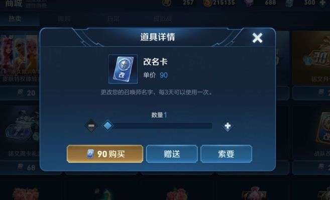 今天玩家在商城中找不到改名卡的原因是,官方在今日临时关停了改名的功能,而同时也决定暂时下架改名卡。