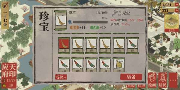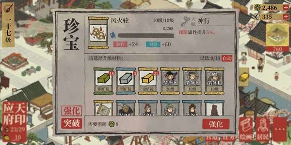 5.铜钱。最不起眼最好获得也是最重要的东西。珍宝的强化突破都会用到铜钱,一不注意几千铜币就出去了,而且开地也会用到巨多巨多巨多的铜钱。所以水井,画室往上怼吧。