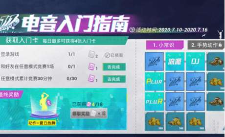 同时获得的电音入门卡还可以用于参与翻牌活动,在九宫格中翻牌凑成一行或者一列即可解锁对应的金币还有服饰币等奖励。