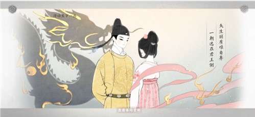 首先这关虽然皇上和杨玉环对视,但是依旧存在一定的距离感。我们只需要用【情】,将两个人划动到一起。变化如下图所示,从白色的背景,变为皇上身后的龙,和杨玉环飘起来的粉色披帛。(PS:没有凤,因为还未成凤)