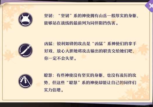 坚韧、凶猛、聪慧分别对应了游戏中对应坦克、输出、辅助等三种职位。