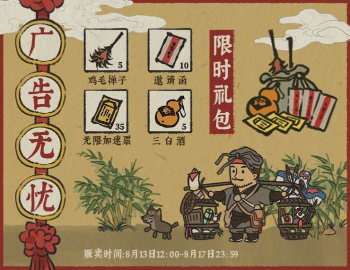 内含【鸡毛掸子*5,邀请函*10,无限加速票*35,三白酒*5】