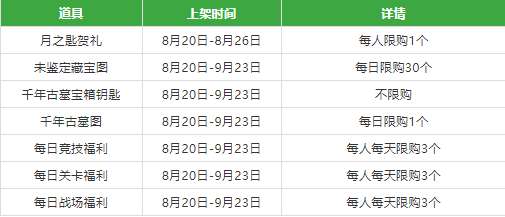 另外,活动期间,部分道具会限时在商城中上架,有需要的小伙伴一定不能错过。