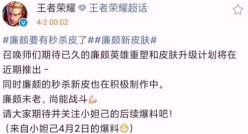 2020年1月的秒杀皮肤是鲁班七号的黑桃队长,按照一年出两款6元皮肤的规律来看,9月份应该会出廉颇的六元秒杀皮肤。九月份的中上旬,估计就这一款新皮肤。