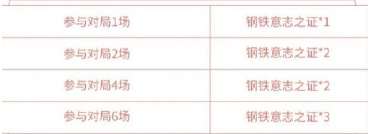 ②对局挑战:通过狂铁试炼活动,完成挑战任务总共可获得钢铁意志之证*8。