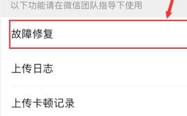 5、进入故障修复后,选择朋友圈的选项。点击后,在弹出的提示内,点击确定的选项。