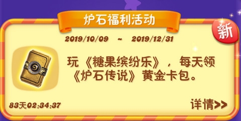 炉石传说黄金卡包还是比较稀有的,那么要说免费送?那么还是令人激动的,最近官方还真的免费送了,炉石传说开启了与糖果缤纷乐的福利联动活动,每个人可以领取到6个黄金卡包!那么怎么才能领取?活动流程攻略为你提供!