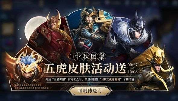 王者荣耀中秋五虎送皮肤活动攻略