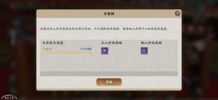 风水许愿树主要是种植在大世界中的树,和其他两种树有着略微的不同,这个玩法主要是需要我们在地图上先寻找公共种植区和名邸种植区来进行种植,种植之后通过着急玩家来浇水使许愿树长大,之后再祈福领奖即可。