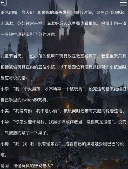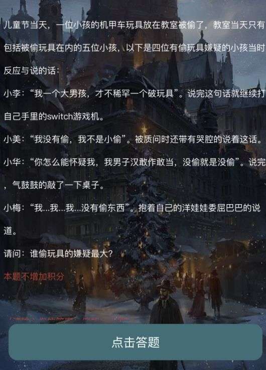 第一关:偷玩具的人是?答案:小华
