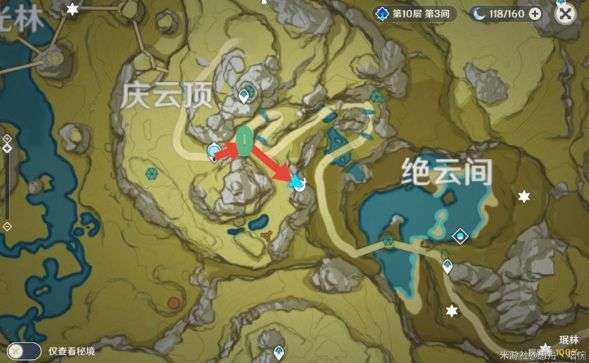 这个路线没有争议把,注意别被丘丘射到就行(绿色位置)。