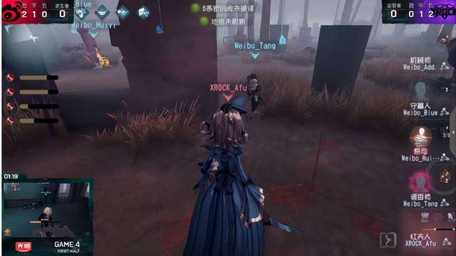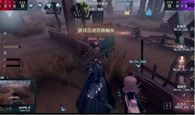 这局选择地图的是Weibo,由于XROCK战队ban掉了永眠镇,Weibo战队他们选择了圣心医院,这张地图属于较小地图的类型,并且中间小楼有个二楼,祭司等角色很容易就把监管者牵制起来,是一张求生者优势特别突出的地图。