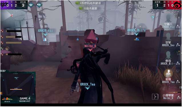 上半场XROCK战队监管者天胡开局,直接击倒挂起了祭司,但后续被救起的祭司也牵制了监管者很长时间。最终监管者力挽狂澜,瞬秒两人完成三抓。