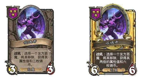 战吼:选择一个友方恶魔,将其移除,获得其属性值和三枚铸币。