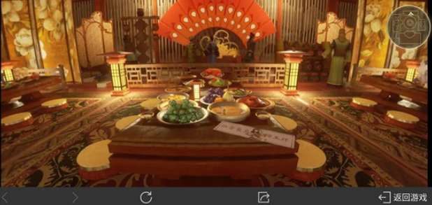 刚进房间东如图上所示,同样将视角转180度,点击下面的花图腾,然后需要长按,可进大理寺主线。