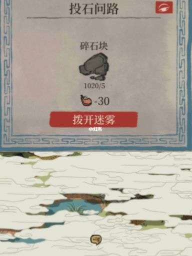 点完之后就到小石碑那里就可以获得一把金钥匙,得到金钥匙之后就可以去被雾遮挡到的那个类似庙的那里解锁,好像是要80体力,之后然后就获得了金画卷和钻。