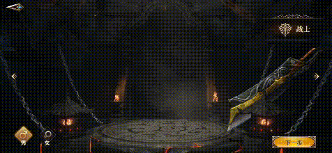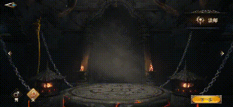 首先是玩家们最为熟悉的石门场景,一眼就能分别图中采用了不同的石材,甚至是烛台与法阵的打光,都是设计师参考了大量的洞穴地宫中发光物的光影进行调优,石门上精细的壁画更是烘托出传奇系列的威严之风。开门后的进入选角画面,一改之前的主城背景,而且贴切了再地城的场景,带有龍魂背景的悬空地台上,经典3职业从中诞生,为玛法大陆带去希望。每位角色出场都会呈现其招牌的武器,像是战士的屠龙、法师的骨玉、道士的逍遥扇,最令大家眼前一亮的,定是出场时那炫酷的动画。
