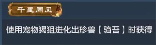 干里同风:使用宠物羯狙进化出珍兽【驺吾】时获得。