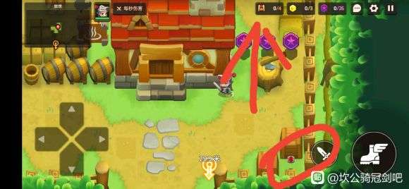 无奈之下,小公主挺身而出吸引怪物火力。我们的主角也终于醒了。旅馆(图中建筑)的右下方有一块盾牌,可以搬起那两个箱子移开。