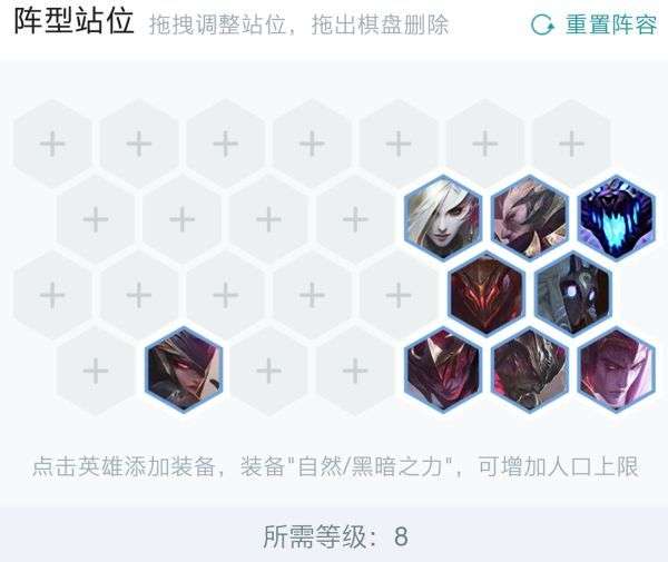 大致的节奏是,一局中vn多,血量低,经济好就3-2拉6人口d出4黑夜2征服,最好能d出2星亚索,基本上能无伤过度3阶段,3阶段的神。vn少,经济好,就上7找亚索。