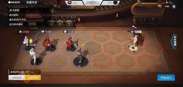 关卡目标:战斗胜利、我方存活5个手办、在25秒内通关。