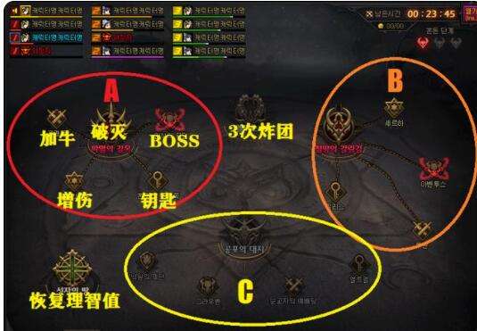 以上就是3大区域15张图的基础作用,它们之间还有一个“联动机制”,即,必须先通关A/B区域的Boss图,才能进入C区域的中间图,有个先后顺序!