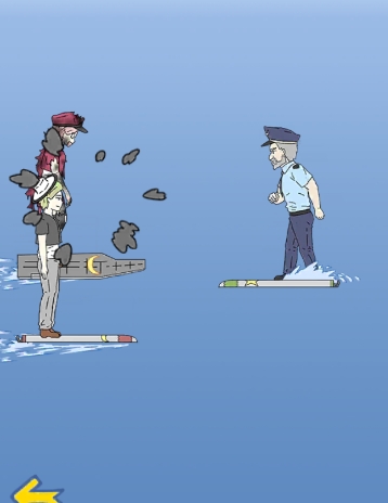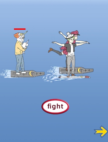 2.然后对少年的甲板使用笔,少年会将月亮改为星星,然后点击fight,会有警察来收拾这对情侣;