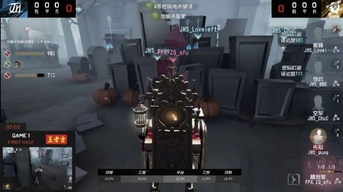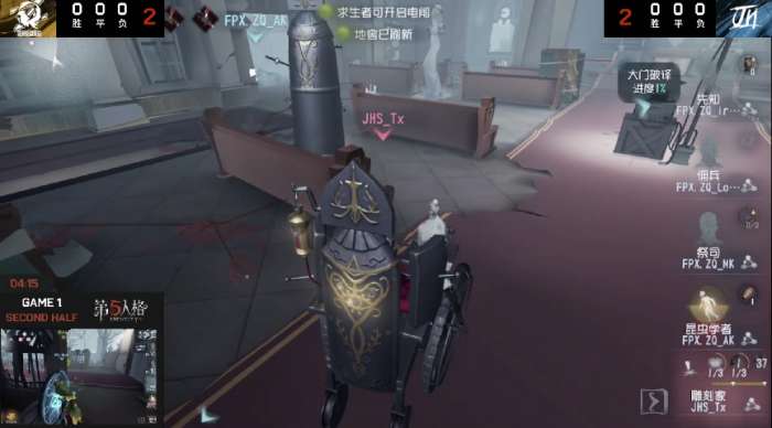 第五人格2021IVL夏季赛常规赛JHSvsFPX.ZQ第一局FPX.ZQ求生者三出JHS