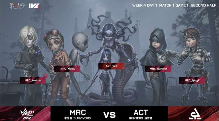 今天将进行的是第五人格2021IVL夏季赛常规赛的第4周第1天第1场中的第1局比赛,对阵双方为ACT战队和MRC战队。
