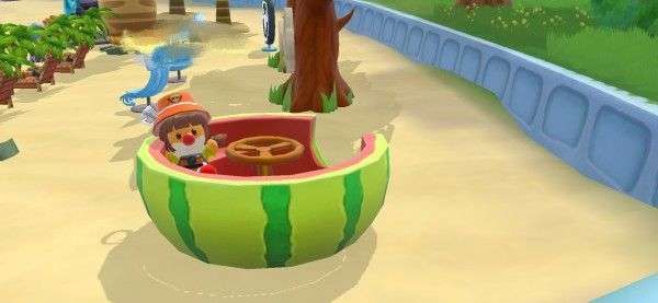 3、摩尔庄园西瓜转转椅在阳关沙滩上有一个,小摩尔们可以自己去试玩一下。听说可以卡BUG,站着在西瓜转转椅上飞翔呢。