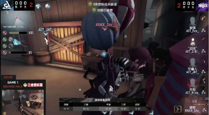 下半场ACT战队求生者3抓1出拿到胜利。