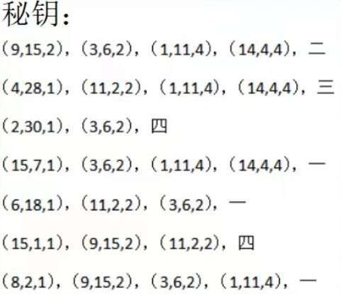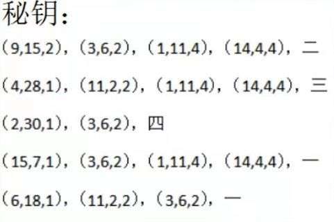 “你”秘钥可以为:(1,9,3),(1,4,2),三。