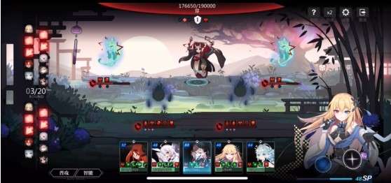 第三回合,阿卡开打,星见打后排(星见第一段必须暴击),雪兔冰普攻打后排,吸血鬼物理盾给阿卡,王女群奶驱散。