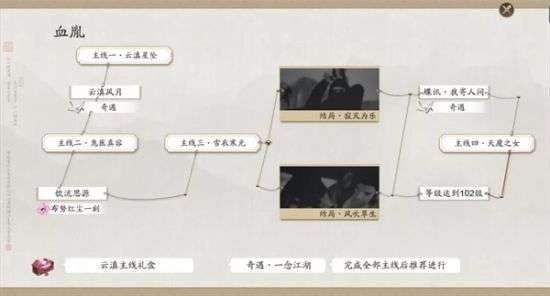 随着少侠们在新剧情中的体验,新奇遇和新好感度中见证的故事,新副本中经历的战斗,以及在整条主线剧情中所做的选择而决定的结局,整条全新主线——血胤才会完整的揭开背后的秘密。