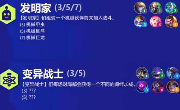 3发明家会召唤出机械甲虫,5发明家会召唤出巨熊,7发明家会召唤出机械巨龙。机械甲虫会为自己和队友设置一道屏障,同时嘲讽附近敌人;机械巨熊会为队友提供攻速加成;机械巨龙会提高队友的额外伤害。