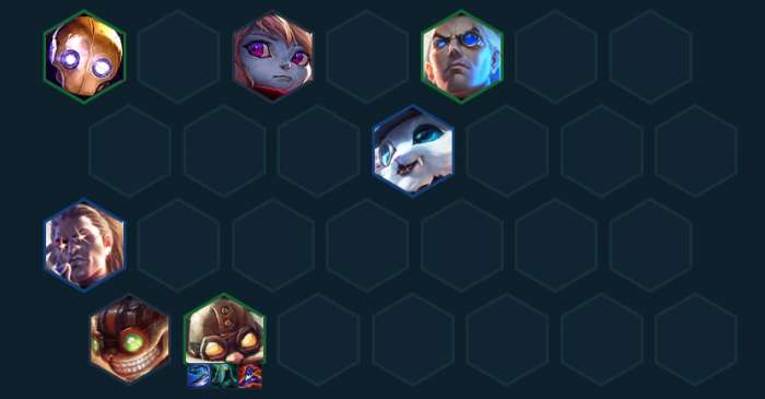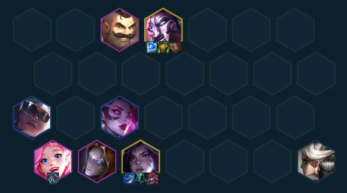 阵容组成(从左到右,从上到下):布隆(4)、加里奥(5)、赛娜(3)、莫甘娜(3)萨勒芬妮(4)、奥莉安娜(4)、卡莎(5)、卡蜜儿(1)